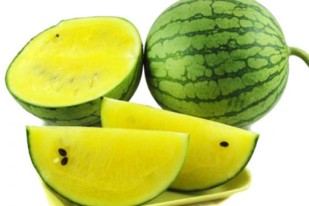 黃瓤西瓜:分為“黑繃筋”和“特小鳳”兩種,特小鳳比較出名。這種西瓜尚未形成大面積種植推廣,但市場上偶有見到。果皮極薄,肉色晶黃,種子特少是其大優點。