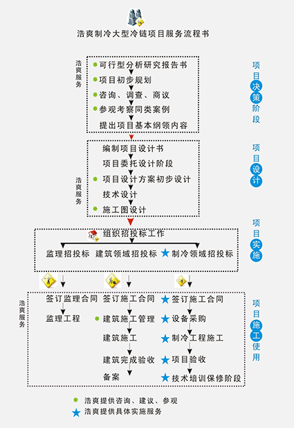 浩爽制冷業(yè)務(wù)人員前期充分了解業(yè)主的項(xiàng)目意圖,充分溝通并指導(dǎo)客戶規(guī)劃冷庫工程,以求以合理具市場(chǎng)競(jìng)爭力的方案,設(shè)計(jì)符合業(yè)主及投資方的需求。